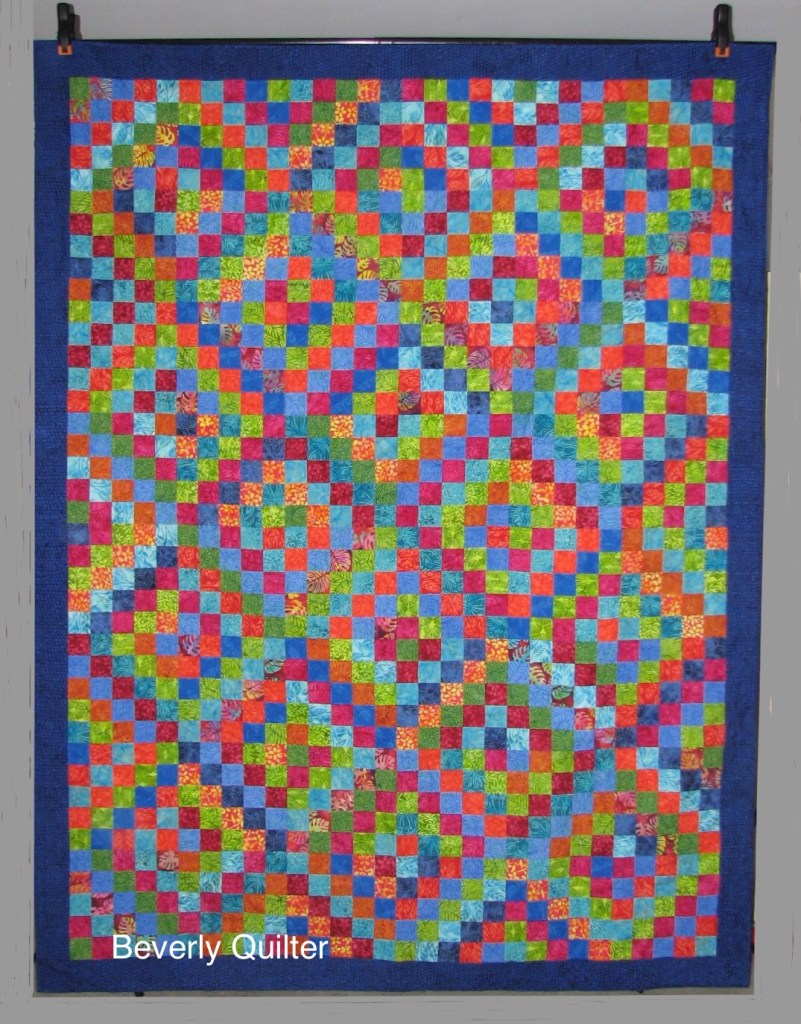 This was a crazy but fun quilt to make. I had seen similar quilts and always wanted to make one. After receiving some colorful strip sets from Island Batiks called “Punch” I knew this was the type of quilt I was going to create with them. Finished measurements of 66”x 85” for this one makes it a large lap,twin bed or a topper for a full sized bed.This quilt sold on http://www.eBay.com