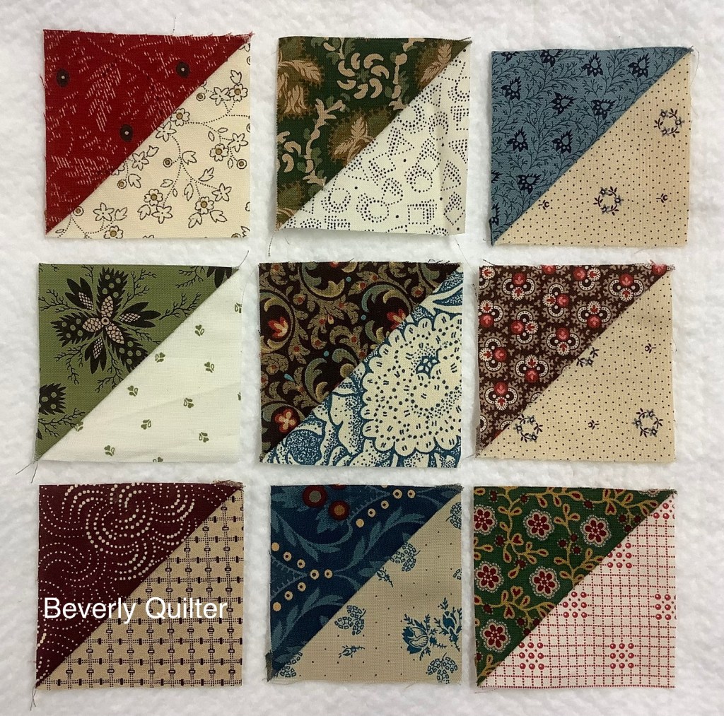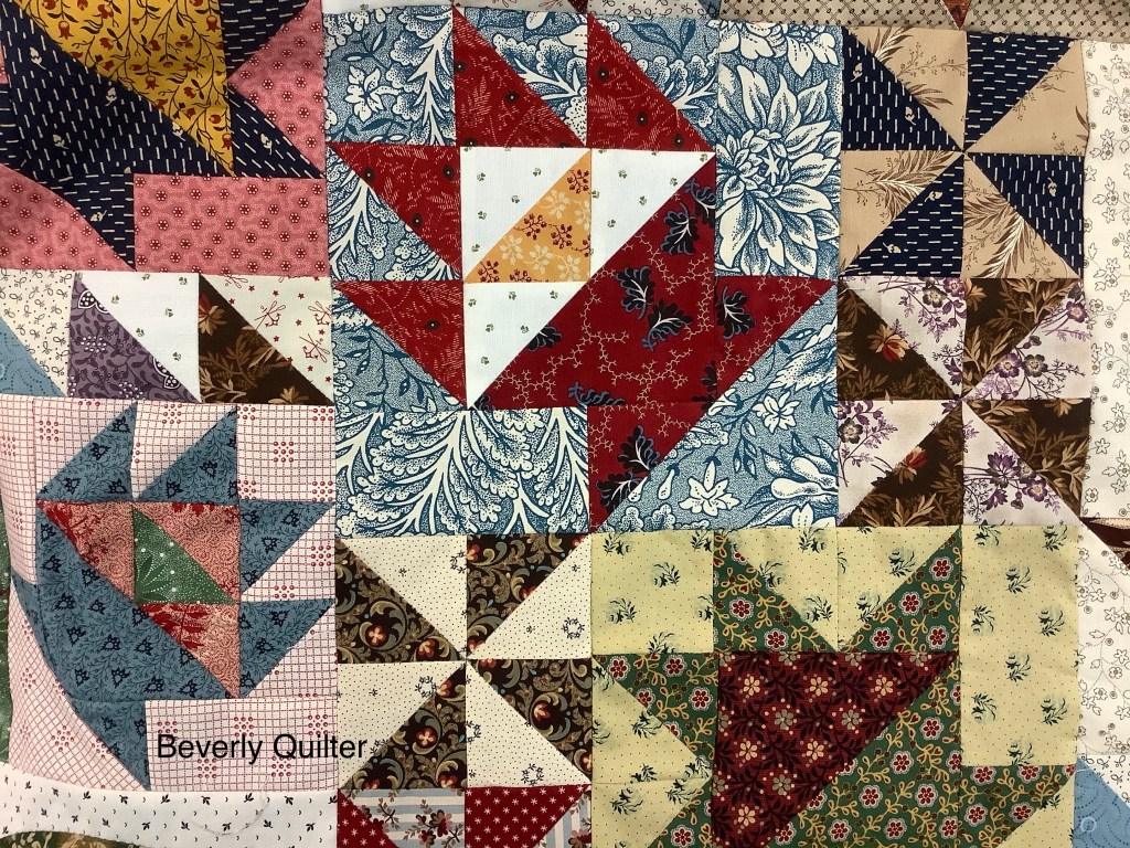 There are a lot of free on-line quilt classes out there and when I stumbled on this one from The Quilt Show I decided to give it a try. Over several weeks, lessons were presented to create the assorted basket blocks in three sizes. I chose to make my blocks with scraps from my stash of civil war reproduction fabrics.