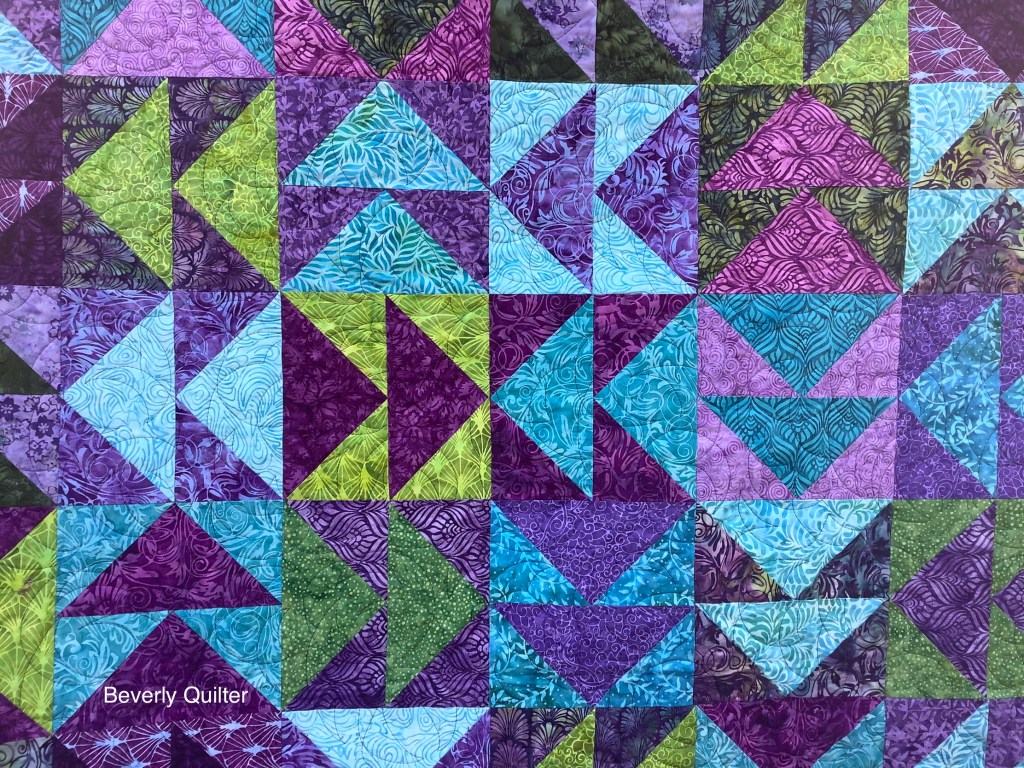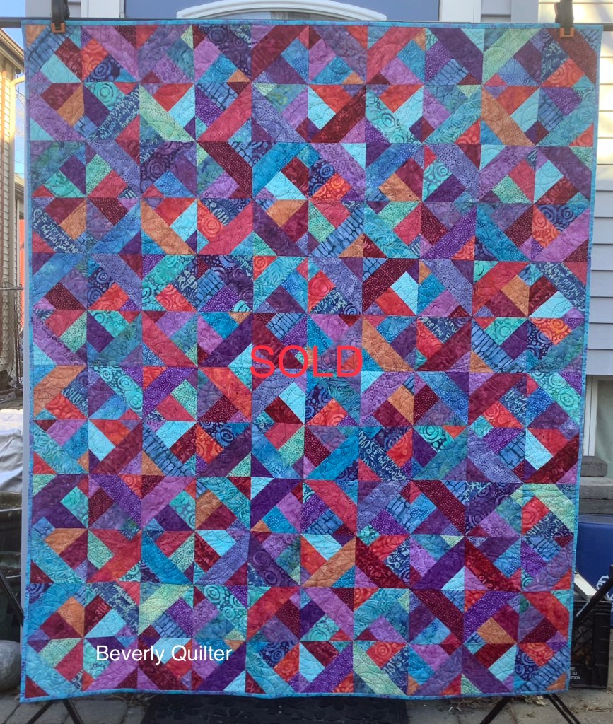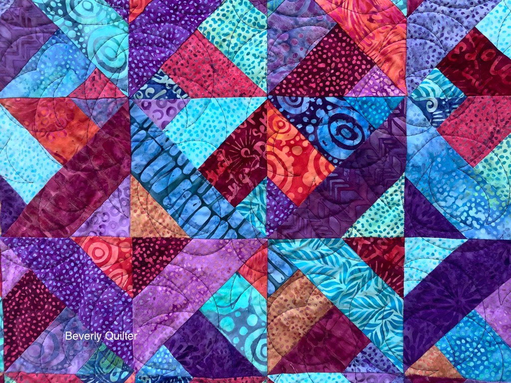 Four different pre-cuts packs and four different block patterns makes a nice little group of quilts. Each quilt top was made using one pre-cuts pack of batik fabric plus some batiks from my stash. The quilts all ended up as nice lap sizes around 48”x64”. I love how they all came out so different. I’m sure I will be making more in different colors and different patterns. These quilts are up for sale on http://www.eBay.com. Please search for “scrappy batik quilts”.