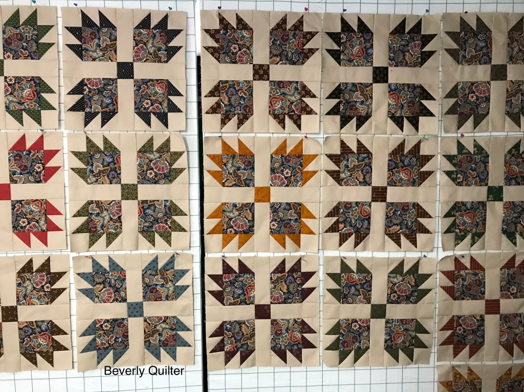 My design wall came in quite handy as I moved the blocks around to get them into a pleasing placement.