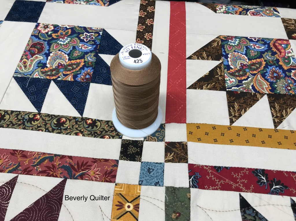 You did a phenomenal job piecing this and love the medium brown thread choice for your quilting.