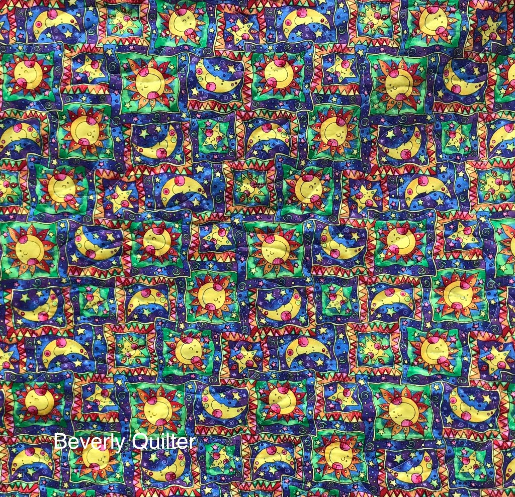 I backed each quilt differently with a complimentary fabric and each quilt has been machine quilted with an all over edge to edge abstract design and a thread color I thought worked well with that particular quilt.