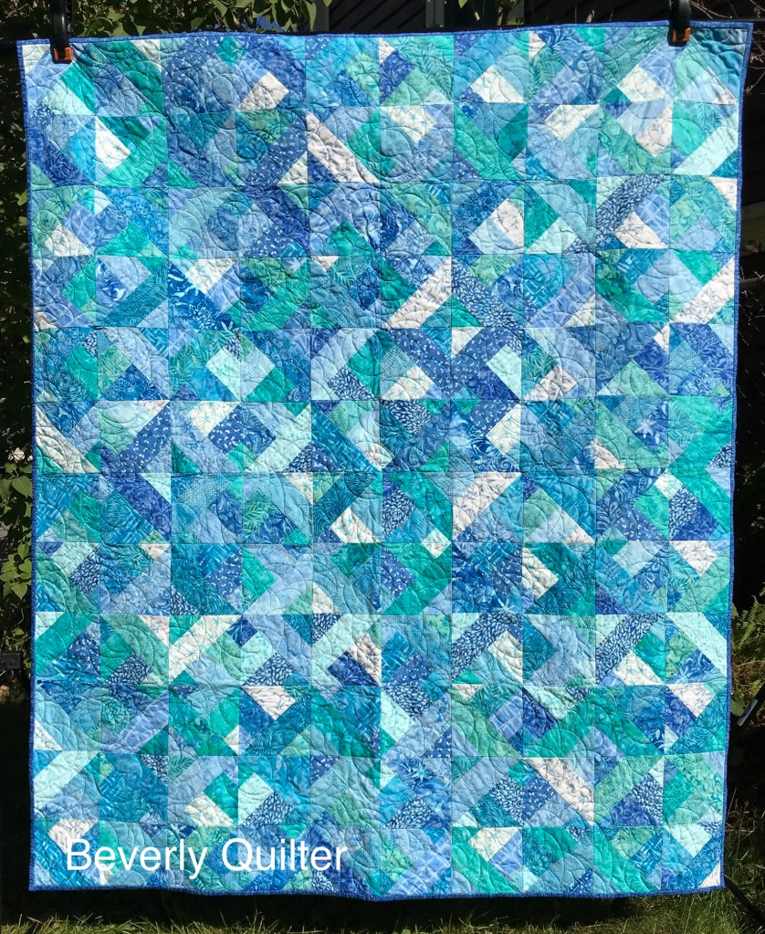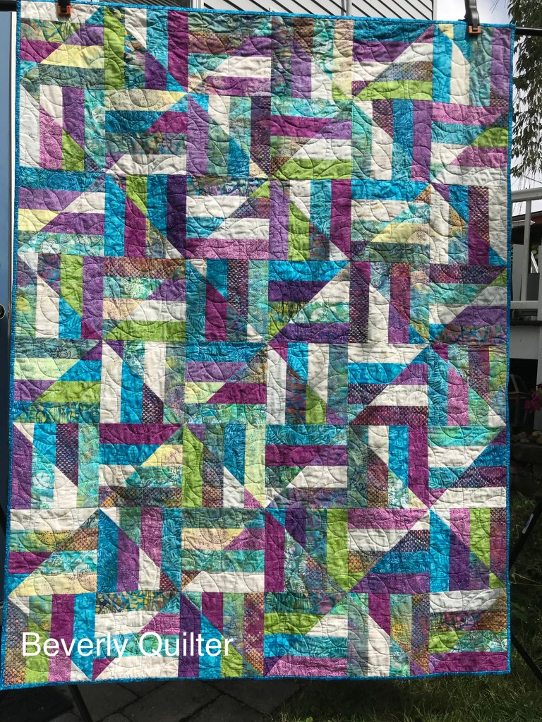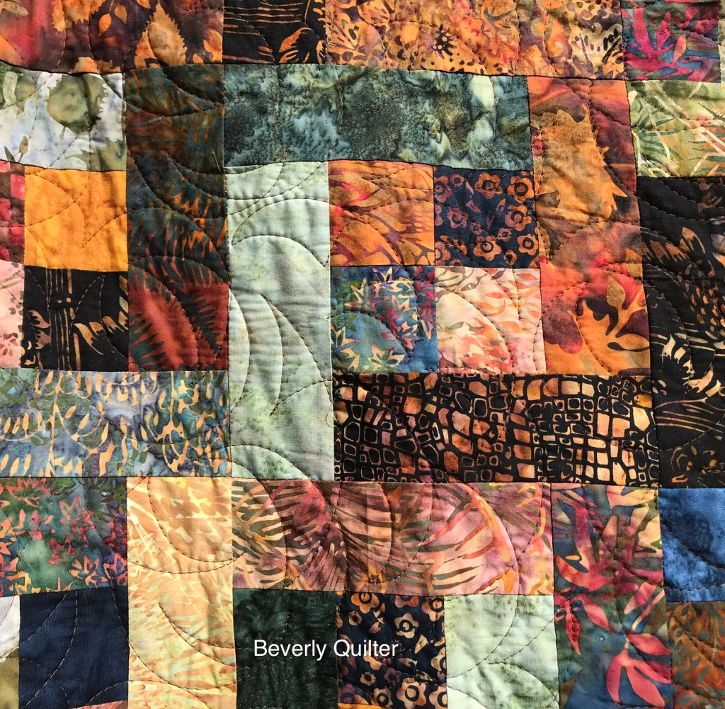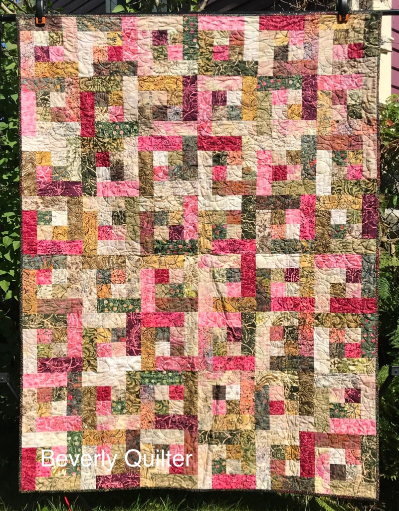 Here are four more scrappy lap sized quilts made with those 2.5” wide strip packs so popular these days. There seem to be endless color combinations being offered by many companies,it’s just so hard to choose! These quilts are available on eBay,please search for Scrappy Batik Quilts.