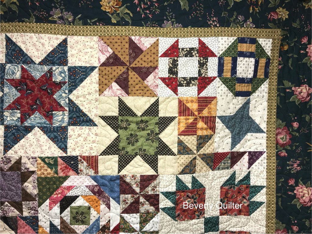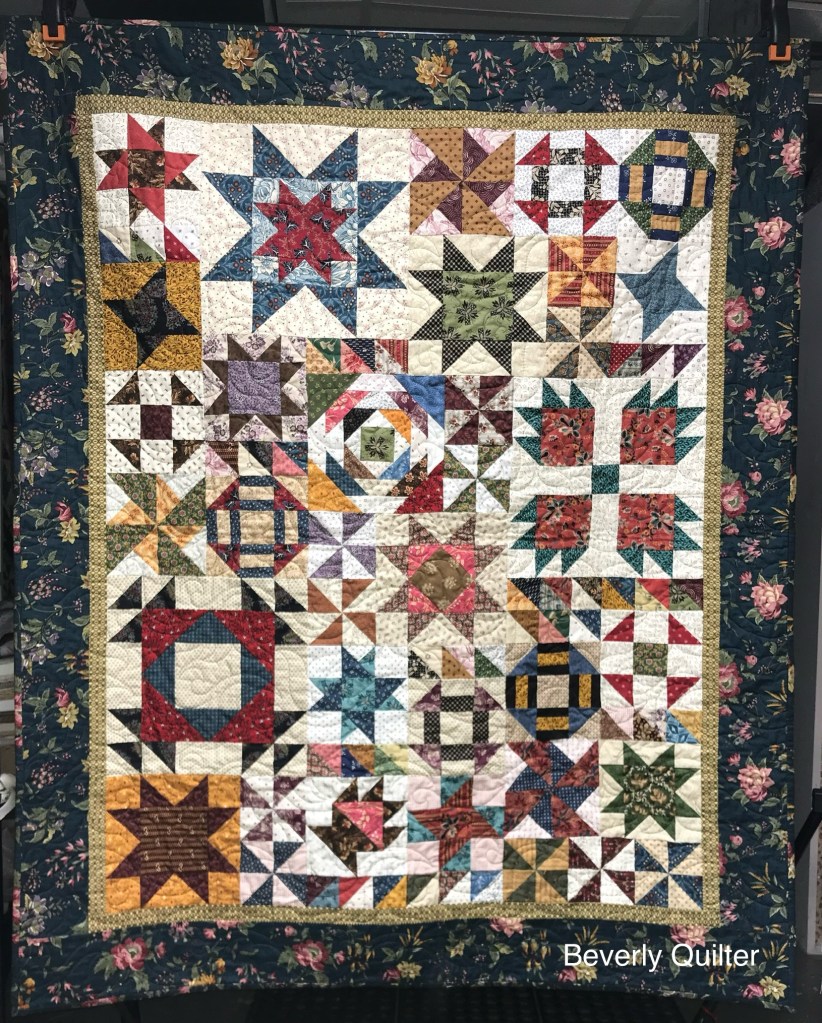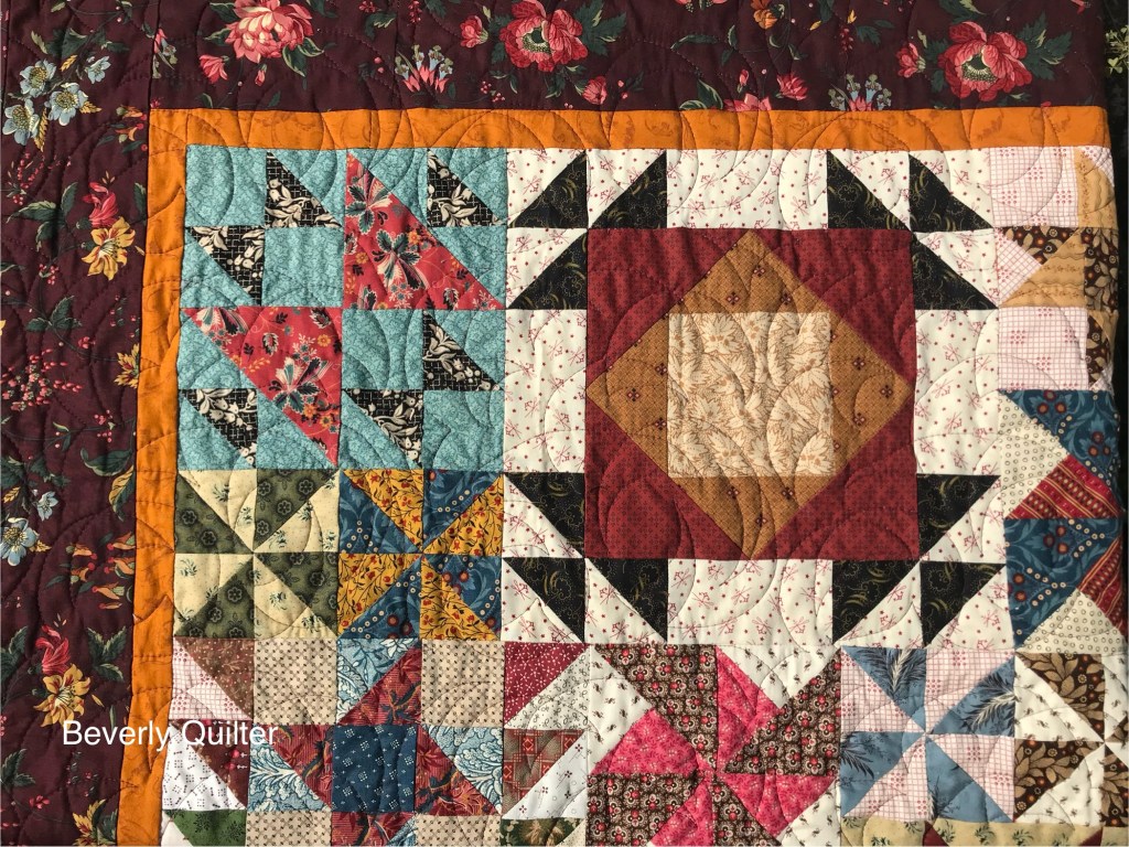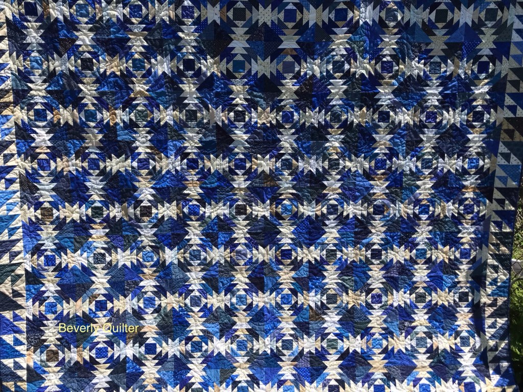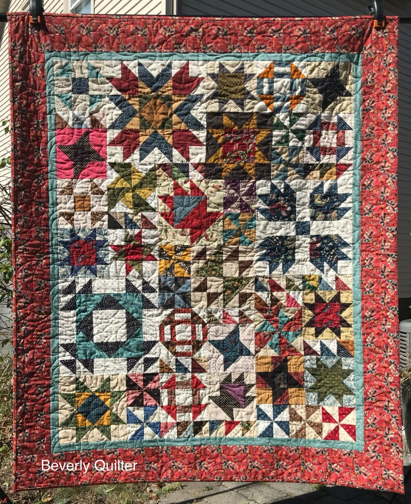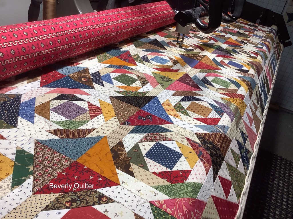 This queen sized quilt began with a group of coordinating fabrics from Henry Glass Fabrics called “Garnets & Gingham”. I went with a solid off white fabric for the background to set off the beautiful red prints. This quilt measuring 87”x106” is up for sale on eBay and may be found by searching for “red and white quilt”.