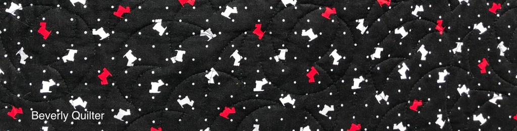 I even used a black fabric printed with little red and white scotty dogs for the backing! This one is quilted with black thread in an edge to edge abstract design.
