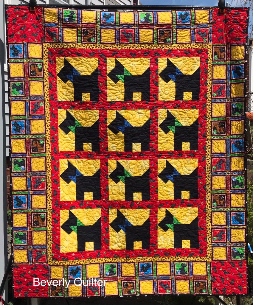 I had fun using an assortment of scotty dog fabrics,and piecing the scotty dog blocks.